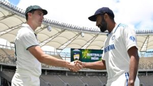 भारत बनाम ऑस्ट्रेलिया सीरीज का पहला टेस्ट 22-26 नवंबर, 2024 को पर्थ स्टेडियम में खेला जाएगा। यह सीरीज दोनों देशों के बीच पहली पांच मैचों की टेस्ट सीरीज है। भारत ने पहले बल्लेबाजी करते हुए 150 रन बनाए, जबकि ऑस्ट्रेलिया ने उस टेस्ट के पहले दिन तीसरे सत्र में 33/4 के स्कोर पर खराब शुरुआत की।